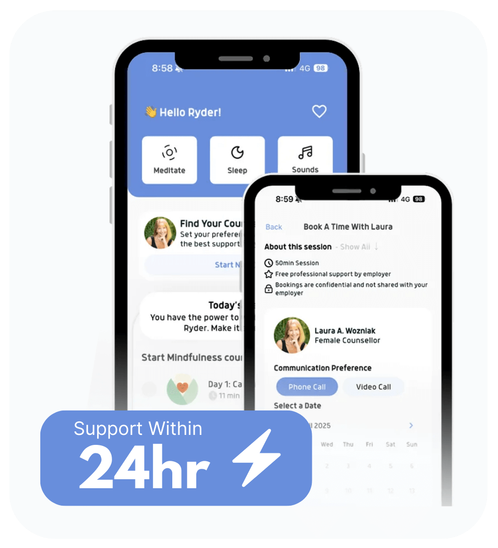 They set their preferences, review a tailored counsellor match and can book a session the same day or within 24 hours.