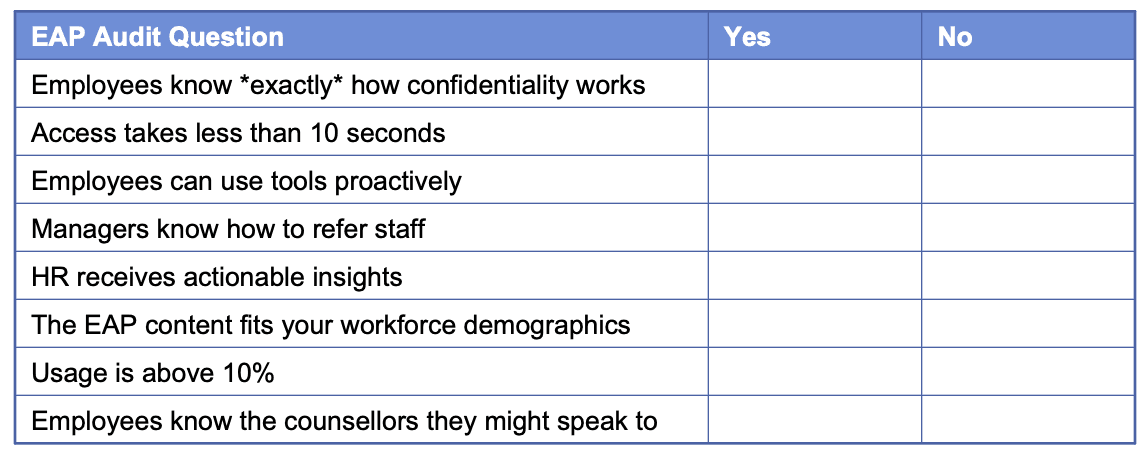 If you found yourself ticking “No”, you’re not alone — most Australian companies discover their EAP is underperforming without realising it.